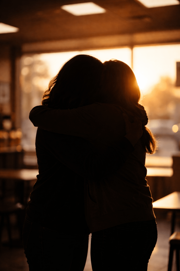 Thankfully, one of the employees noticed too. She stepped in gently and offered the woman a warm, meaningful hug. The woman cried for another minute before wiping her face and collecting her order.