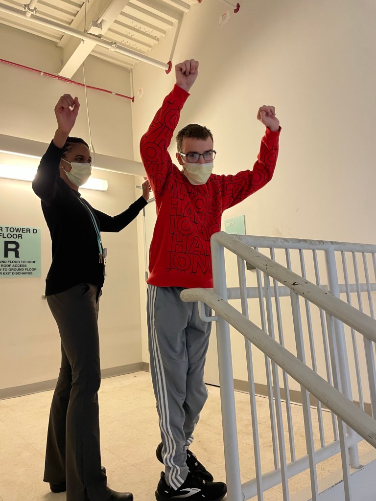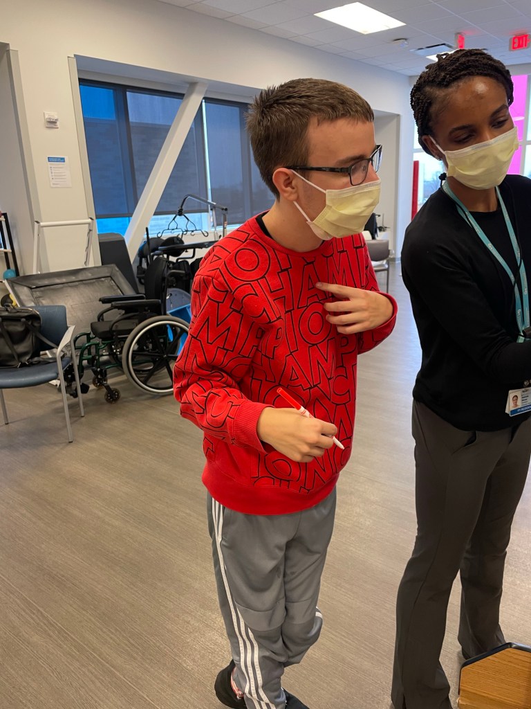 Yesterday Mr. Kinch sent me a video along with a picture of some things Eli was doing in school to keep his body in motion. He not only worked in the gym, but he had his community field trip where he got a ton of walking in! When I got him from school, we went straight to CHOP and he continued working hard like he normally does.