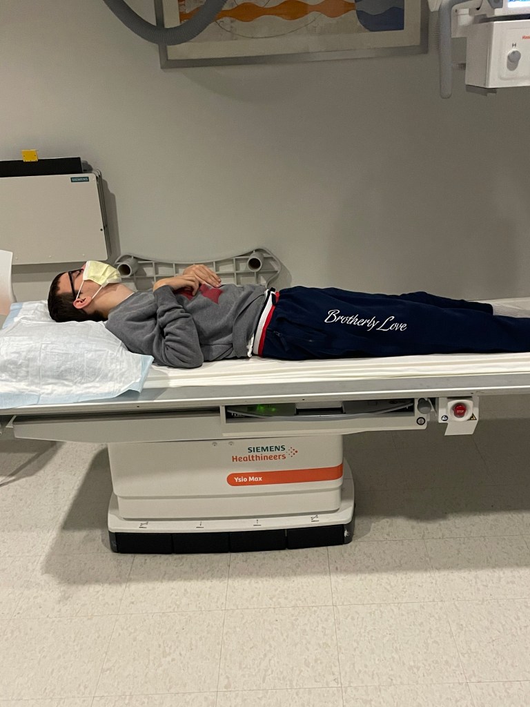 Now today we had Eli’s one year post op and I woke with a sick feeling. Not knowing if some of the things we see, or don’t see are because we aren’t working with him enough, because of the atrophy in his legs or simply because of MLD and how it continues to affect him. After some X-Rays and a nice long chat with the doctor, we learned that Eli’s legs are still straight, the titanium is still holding him together and orthopedic wise, he is good to go!!