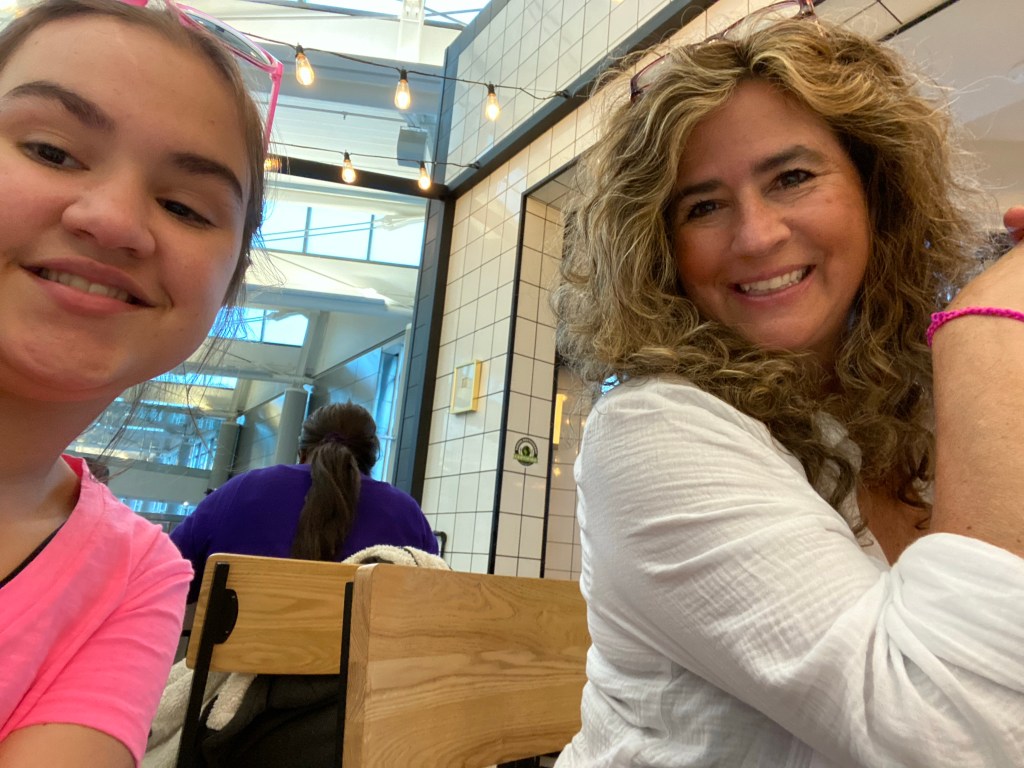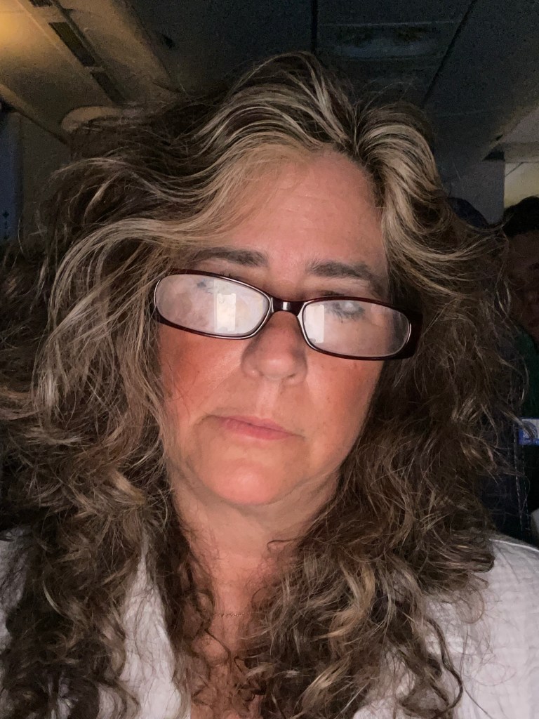 We ate, and went to our gate. Let’s just say I felt the Karen in me starting to come out as I noticed there was no place to sit and wait at the gate, as they have all these tables now, but nowhere near enough chairs, then as we were waiting to board, the airport was struck by lightening, which pushed things back a good hour, but we finally boarded. Karen continued to try to come out but thankfully she didn’t make it. We sat on the tarmac for about two hours waiting to leave and since I’m not drinking, we’ll let’s just say I really wanted one.