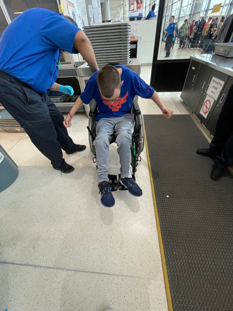 We made it through security until they picked Ei to do a full body pat down on along with his chair.
