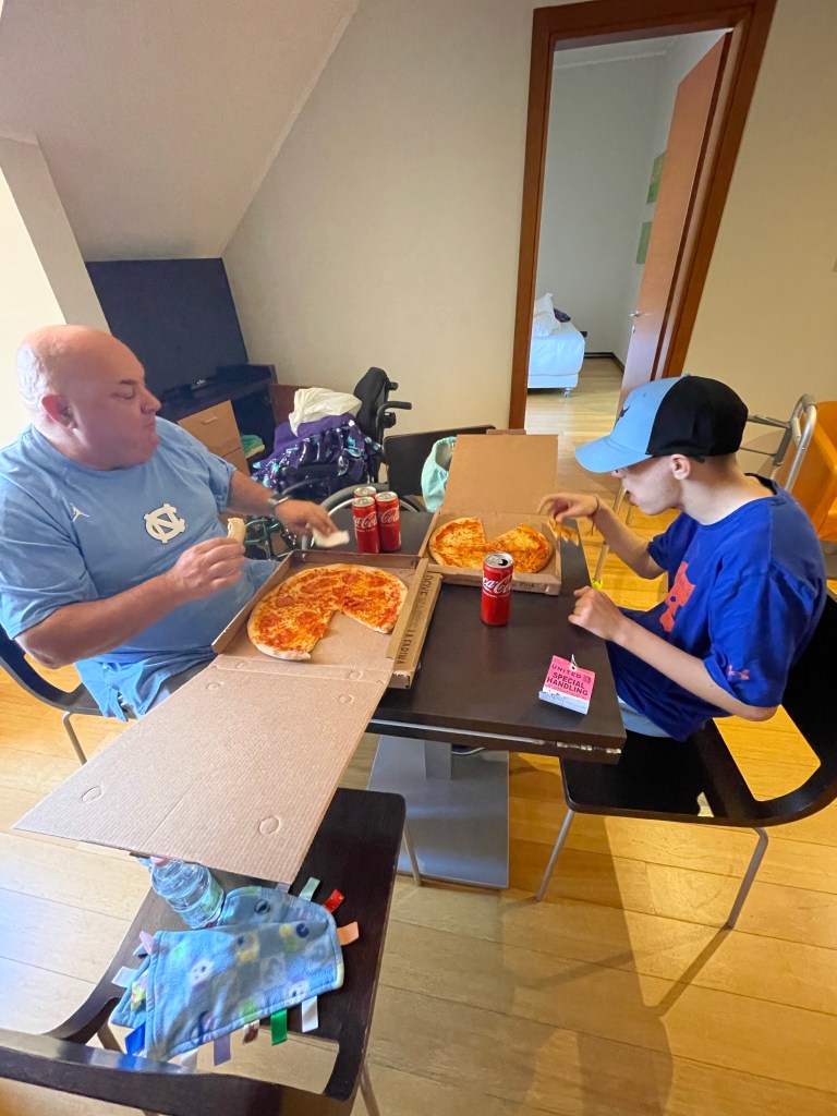 We had plenty of time to eat before our flight, so we found a pizza place, go figure since I’m sure we will have enough these next two weeks.