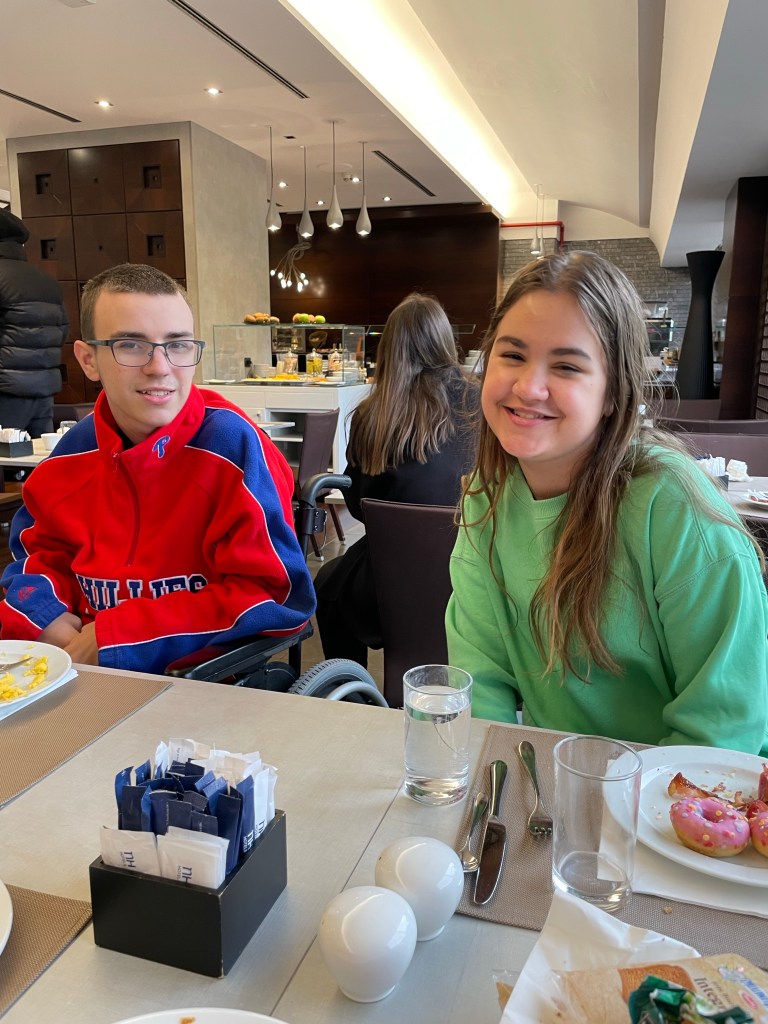 We walked back to our residence in time for a sit down breakfast which they both enjoyed. Bacon sandwiches and fresh pineapple juice for the win! donuts too but they didn’t quite taste like our donuts at home:)